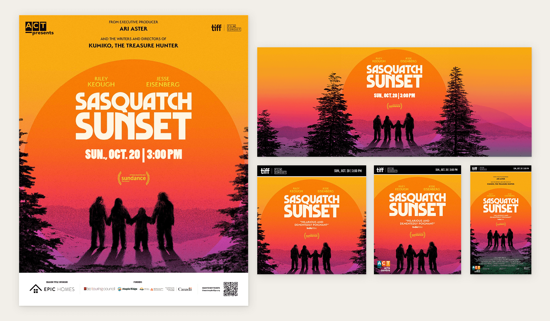 The TIFF film series presented a unique challenge. The only asset provided for each of the four films was an exported poster file, with no access to original working files. I adapted these static graphics into multiple formats, including social media posts, web banners, and posters in three distinct sizes, while preserving their quality and meeting the requirements of each medium.